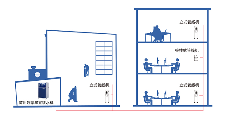 适合单位、办公楼等场所; 可满足8-10人/小时/台热水需求(以500ML/杯计算,立式管线机为例)